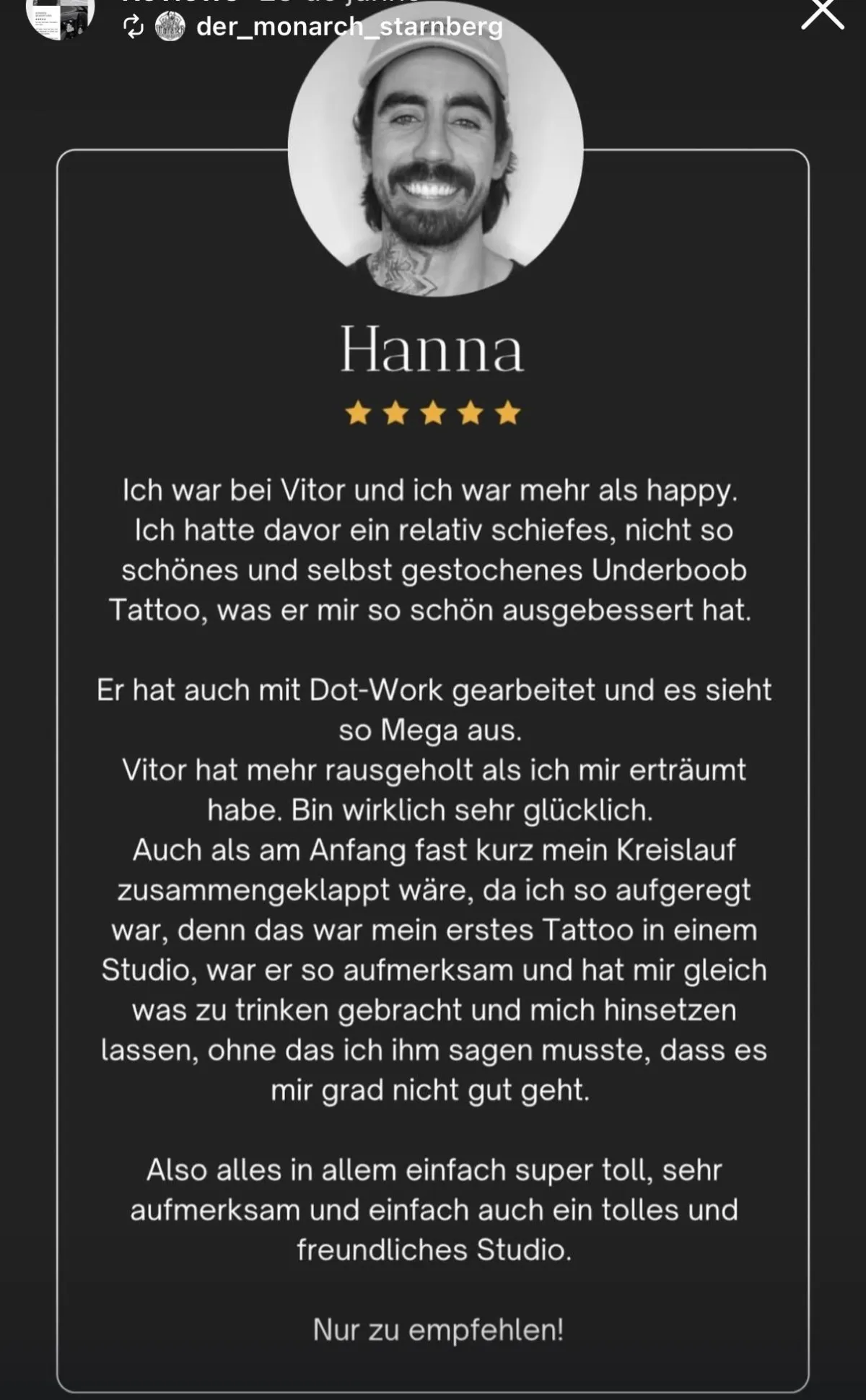 ✔️ Ein Beratungsgespräch ist individuell. Ich beantworte gerne alle deine Fragen und versuche dabei dich so gut wie möglich auf deine Tätowierungssitzung vorzubereiten.