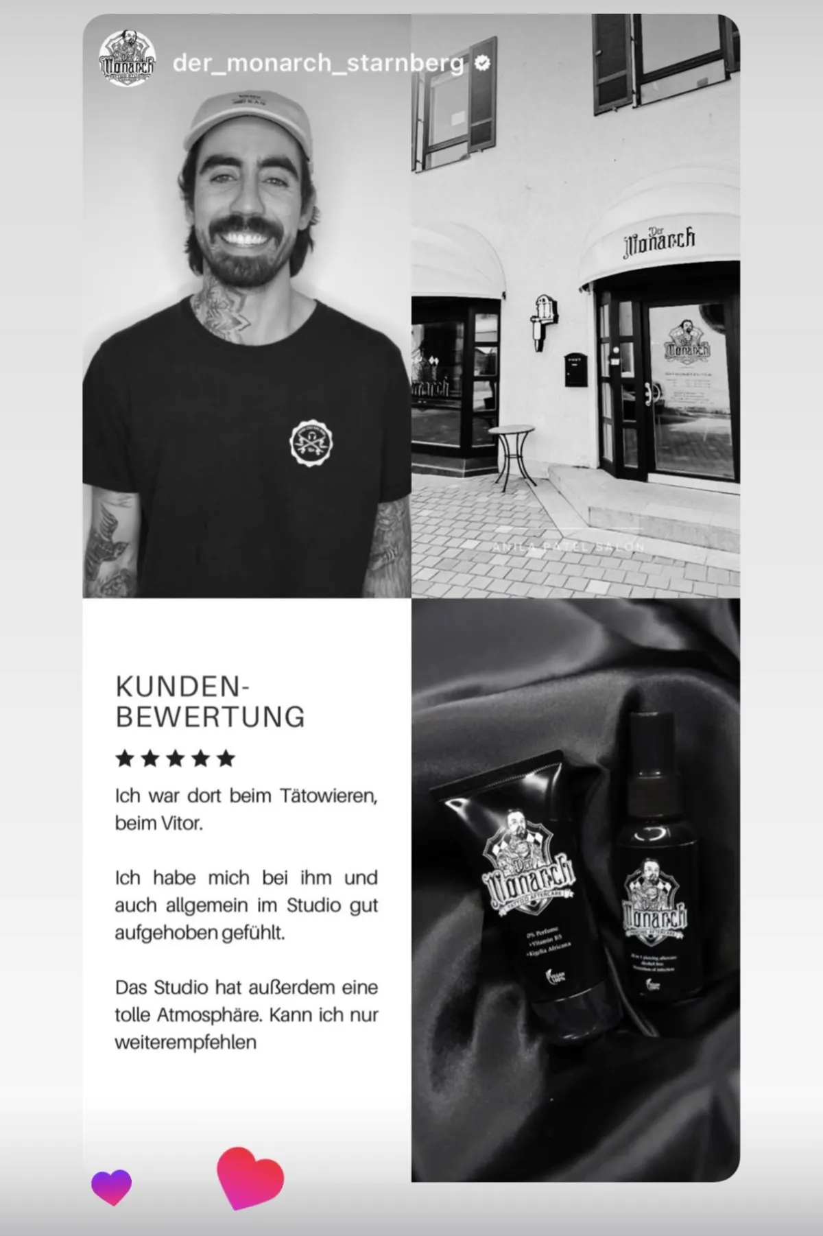 ✔️ 100 Euro Rabatt auf eine Tagessitzung + kostenloses Nachsorgeprodukt + natürlich ein erstklassiges Tattoo!